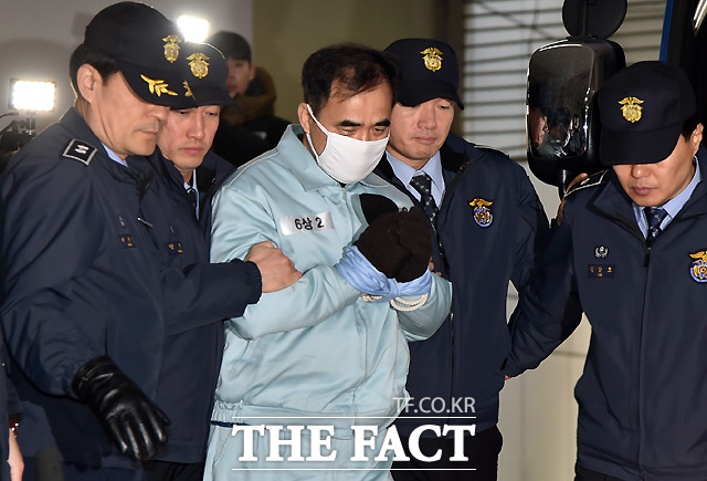 [더팩트ㅣ이새롬 기자] 김종 전 문화체육관광부 2차관이 소환 조사를 받기 위해 30일 오전 서울 강남구 대치동 특별검찰팀 건물에 도착해 호송차에서 내리고 있다.