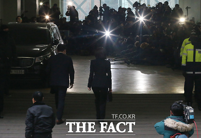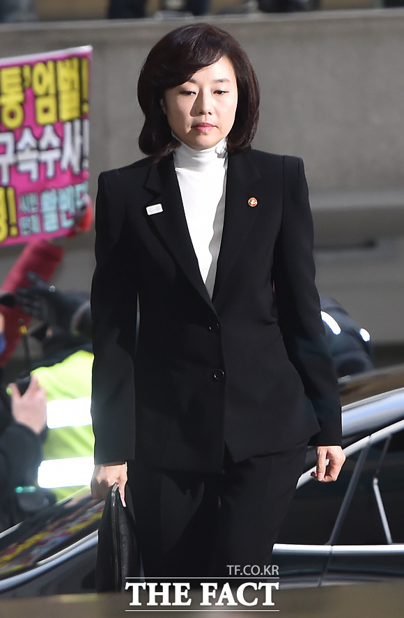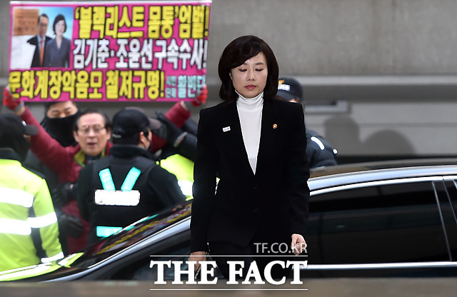 [더팩트ㅣ이새롬 기자] 조윤선 문화체육관광부 장관이 직권남용 권리행사방해 피의자 신분으로 17일 오전 서울 강남구 대치동 특검사무실에 출석하고 있다.