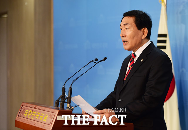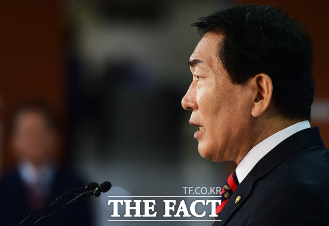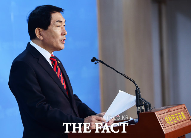 [더팩트ㅣ배정한 기자] 안상수 자유한국당 대선 예비후보가 14일 서울 여의도 국회 정론관에서 일자리와 안보, 통합 관련 공약을 발표하고 있다.