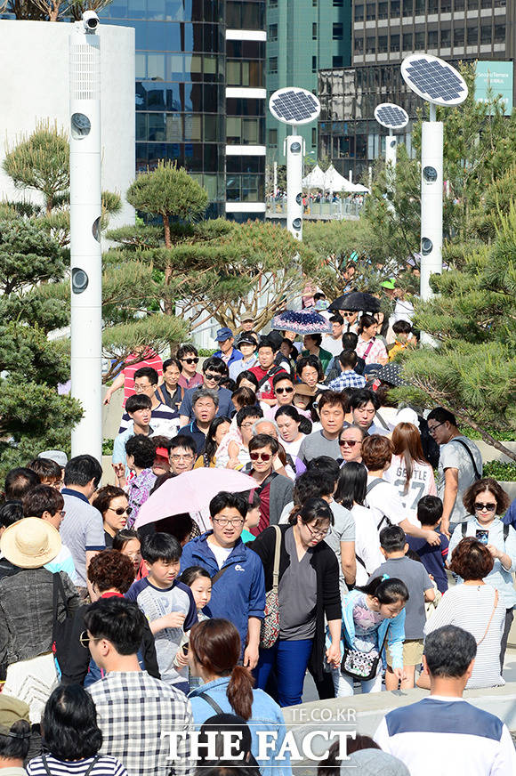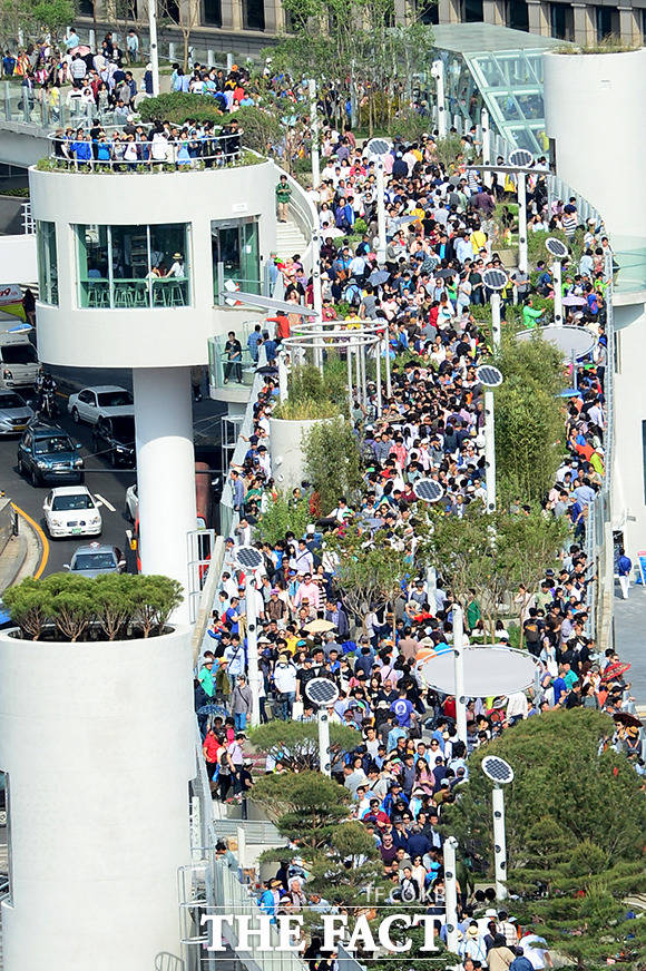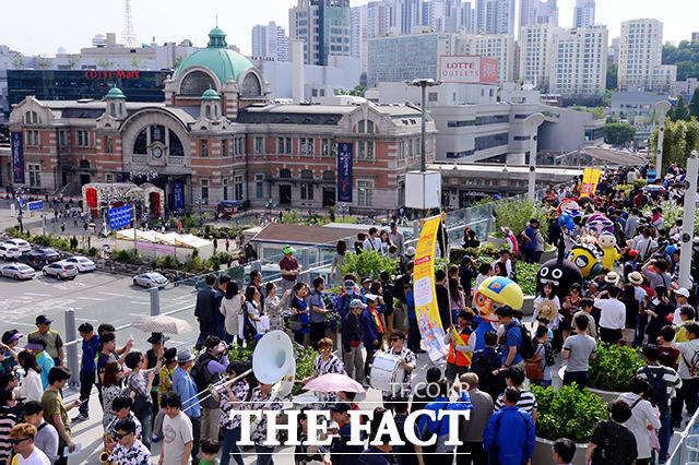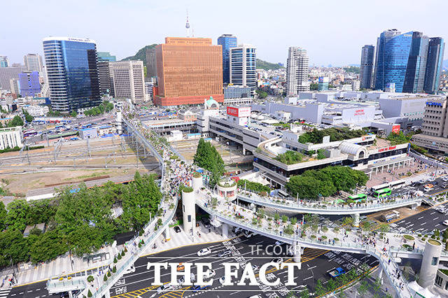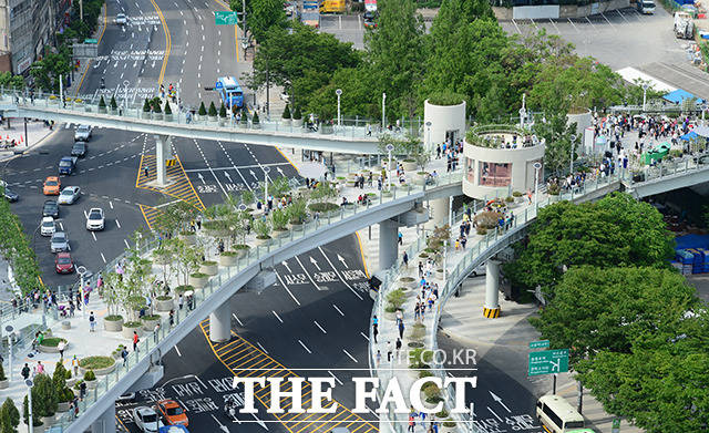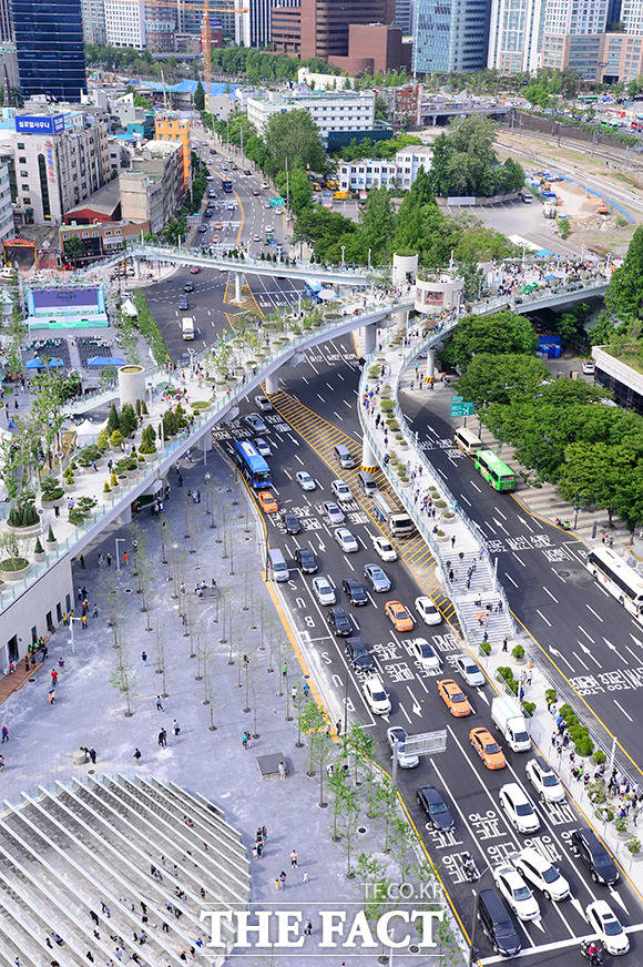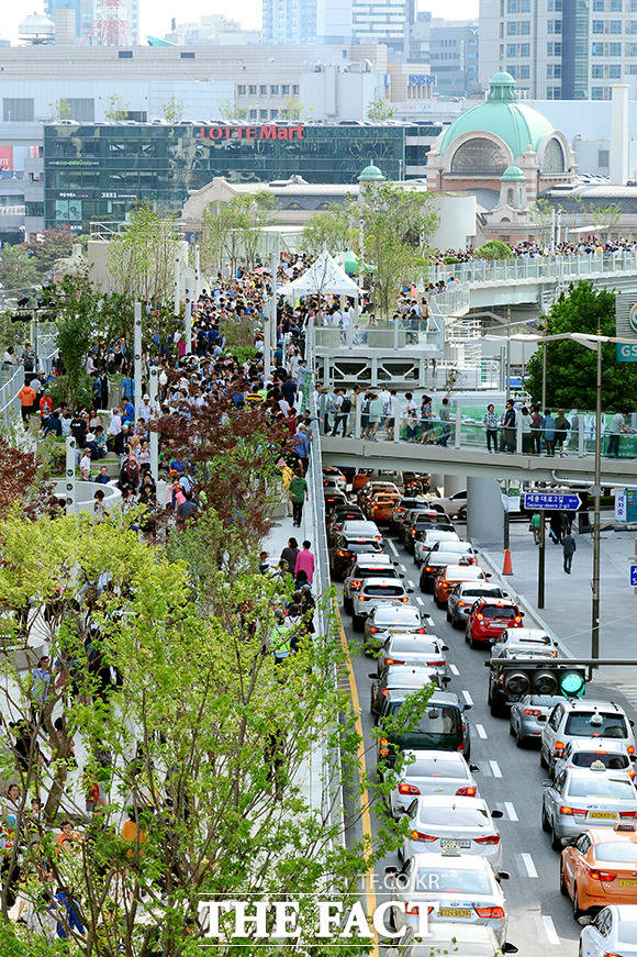 [더팩트ㅣ남용희 기자] '서울로 7017'이 정식 개장한 20일 오후 서울역 앞 서울로가 시민들로 붐비고 있다.