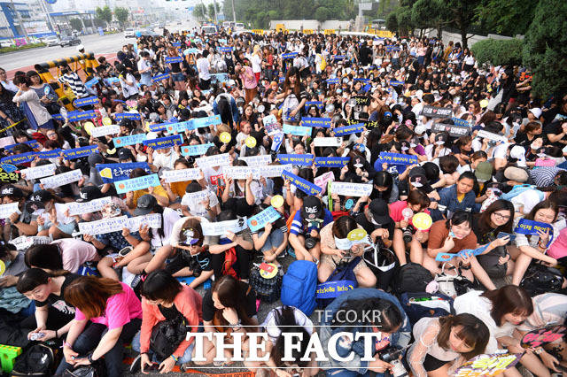 [더팩트 | 원주=남윤호 기자] 그룹 슈퍼주니어의 멤버 은혁이 12일 오전 강원도 원주 제1야전군사령부에서 군 복무를 마치고 전역한 가운데 이른 아침부터 은혁을 마중 나온 팬들이 피켓을 들고 기다리고 있다.