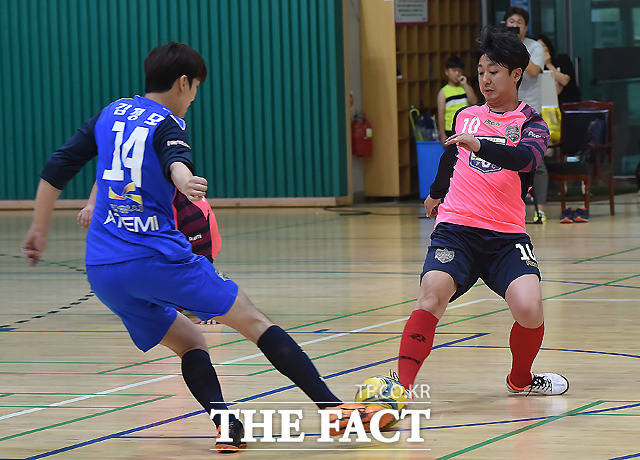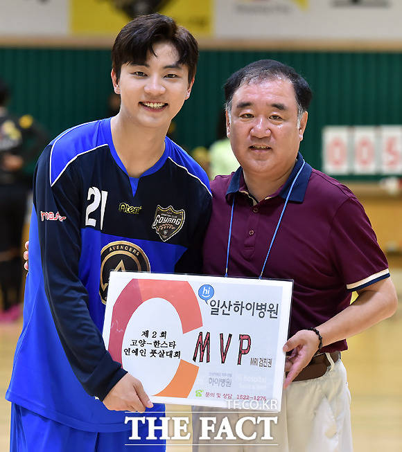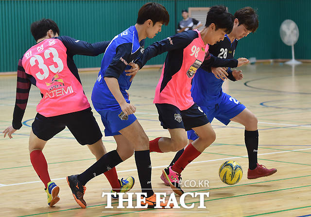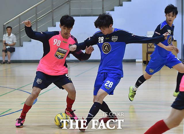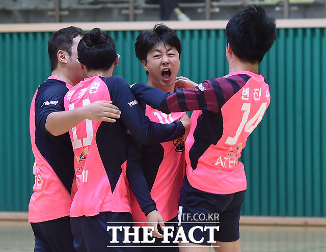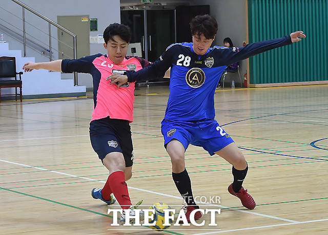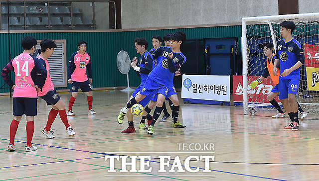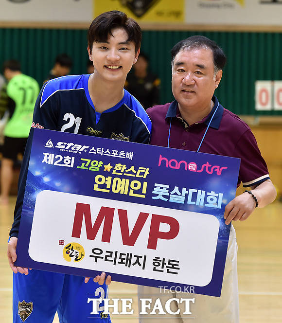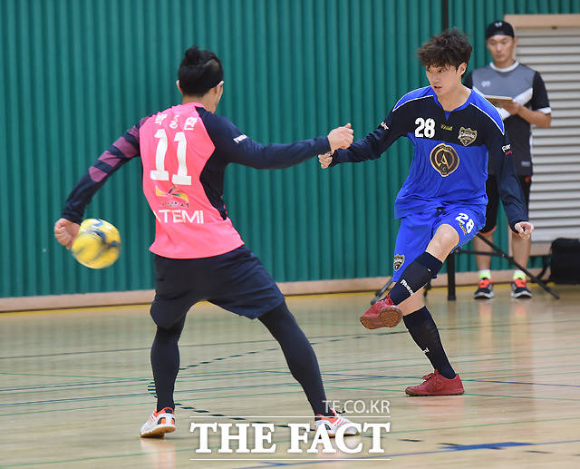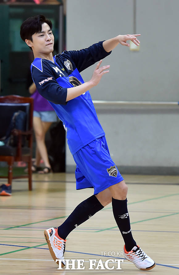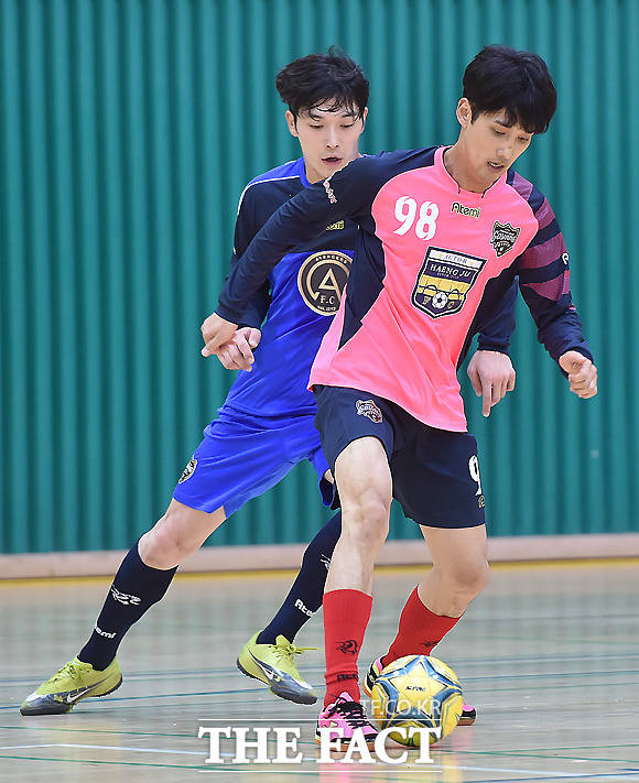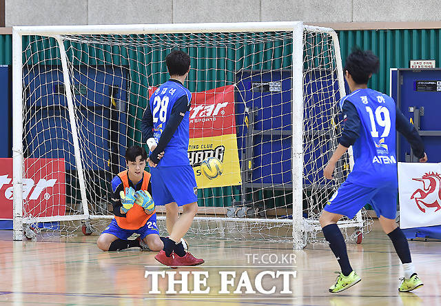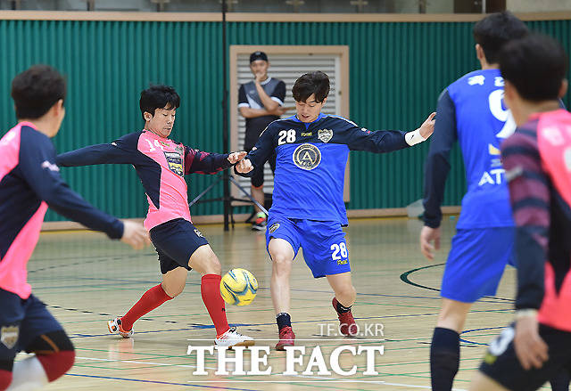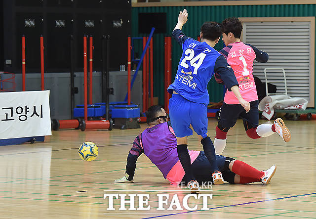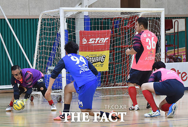 [더팩트ㅣ고양=이새롬 기자] 스타스포츠배 제2회 고양·한스타 연예인 풋살대회가 예선 2차전이 13일 경기도 고양시 어울림누리 스포츠센터에서 열려 FC행주-FC어벤저스 경기가 진행되고 있다. 이날 경기는 1대5로 FC어벤저스가 승리했다. 사진은 골을 넣고 기뻐하는 FC어벤저스의 이건.