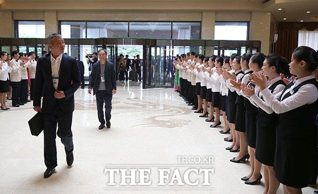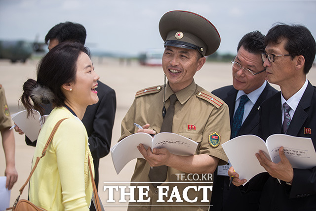 [더팩트ㅣ사진공동취재단] 통일농구경기에 참가한 농구단 선수들이 3일 평양순안공항에 도착해 북측 관계자에게 신분 확인을 하고 있다. 남북 통일농구는 통산 네 번째이자 15년 만이다. 1999년 9월 평양에서 처음 개최된 남북 통일농구는 같은 해 12월 서울에서 또다시 열렸고, 2003년 10월 평양 류경정주영체육관에서 마지막으로 열렸다. 농구 경기는 4일 남북 혼합경기, 5일 친선경기를 남녀 선수별로 모두 4차례 연다.