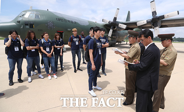 [TF포토] 공군 수송기로 평양 도착한 농구 선수단