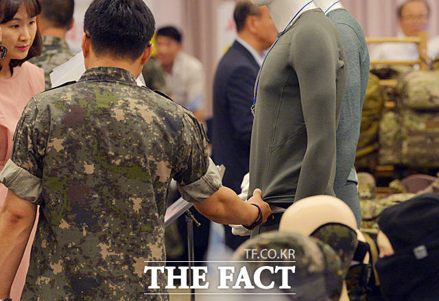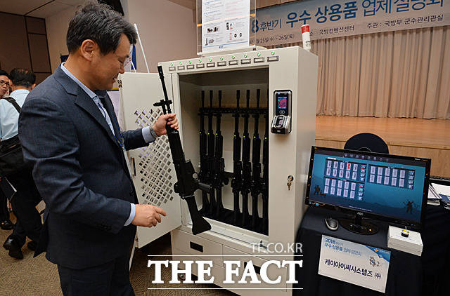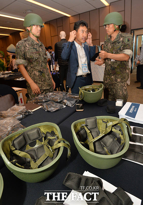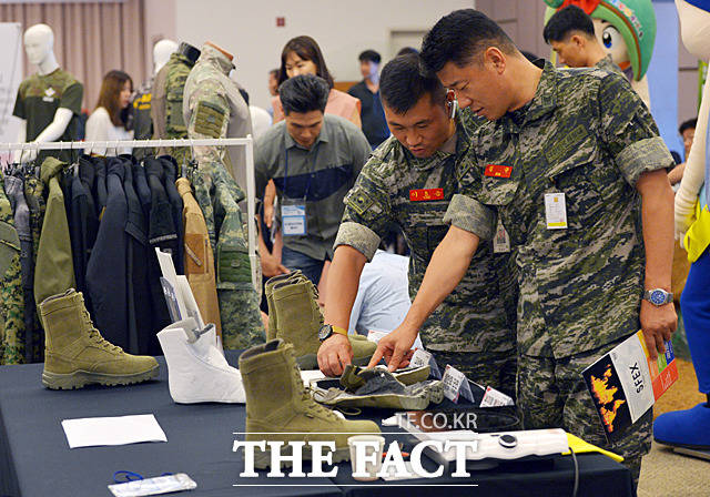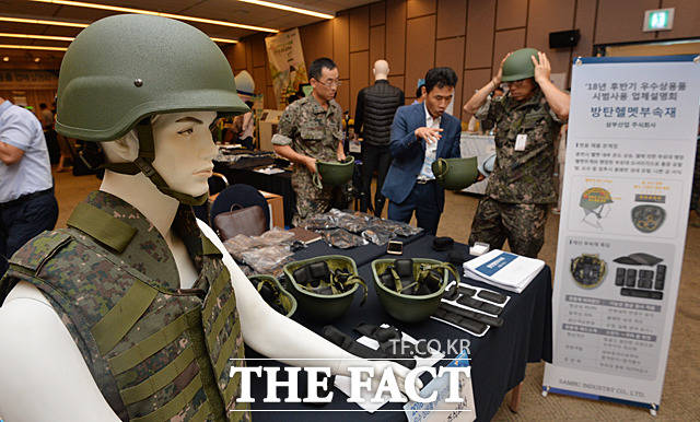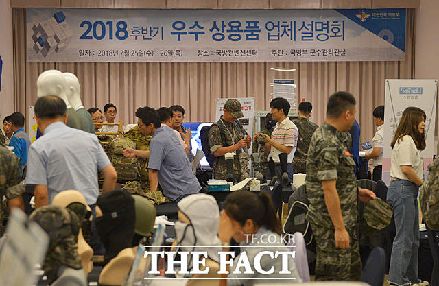 [더팩트ㅣ문병희 기자] ‘2018년 하반기 우수상용품 업체 설명회’가 25일 서울 용산구 국방컨벤션에서 국방부 주관으로 열린 가운데 각종 물자 및 장비가 전시되고 있다.