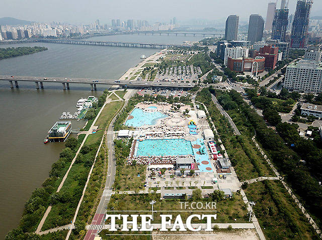 [더팩트ㅣ이효균 기자] 폭염이 계속되고 있는 3일 오후 전국 대부분 지역 낮 기온이 35도 이상으로 오르는 가운데 서울 여의도 한강시민공원 수영장을 찾은 시민들이 물놀이를 즐기고 있다.