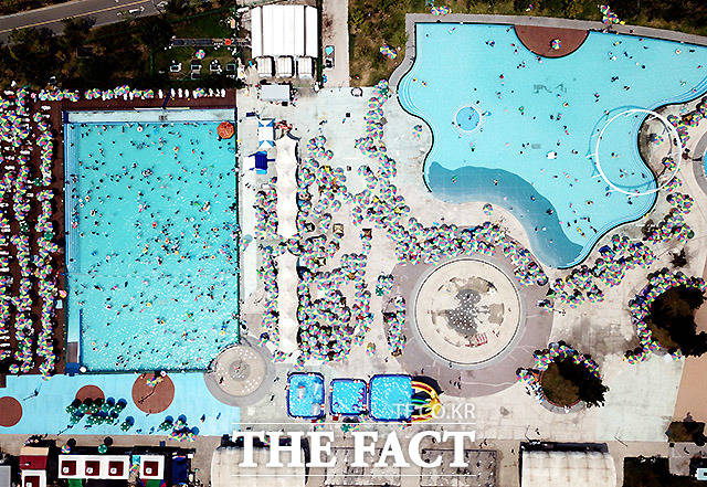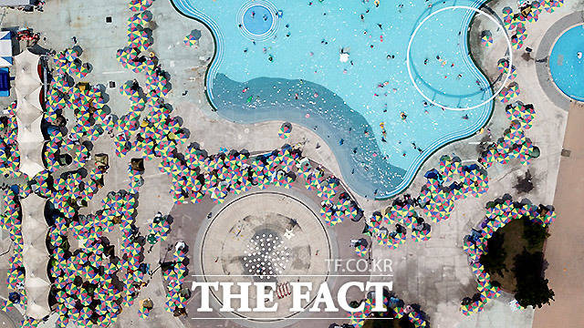 [TF포토] 재난 수준의 날씨...'수영장은 물 반 사람 반'