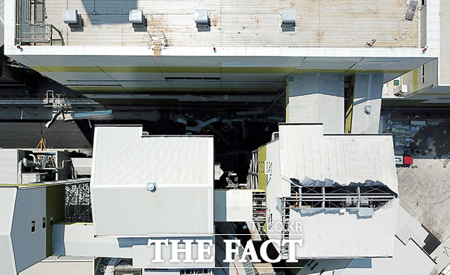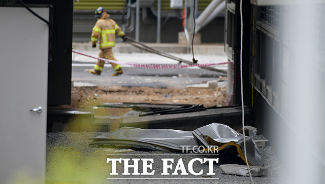 8일 오전 8시28분께 경기 포천시 신북면 장자산업단지에 있는 한 석탄화력발전소에서 폭발사고가 나 근로자 1명이 숨지고 4명이 다친 가운데 폭발 파편이 곳곳에 나뒹굴고 있다. /이덕인 기자