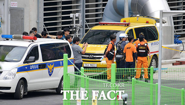 [더팩트ㅣ포천=이덕인 기자] 8일 오전 8시28분께 경기 포천시 신북면 장자산업단지에 있는 한 석탄화력발전소에서 폭발사고가 나 근로자 1명이 숨지고 4명이 부상을 입었다. 사고는 지하 2층에서 지상으로 석탄을 끌어올리는 배관을 점검하는 과정에서 분진이 폭발하면서 생긴 것으로 소방당국은 추정하고 있다.