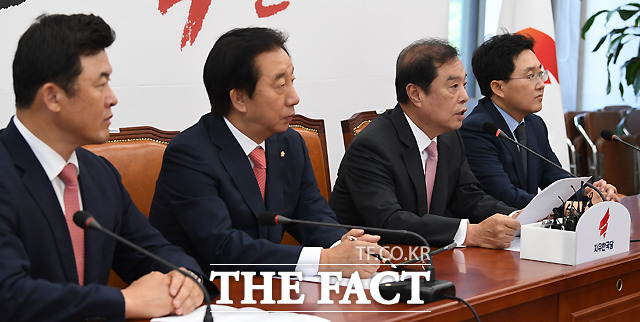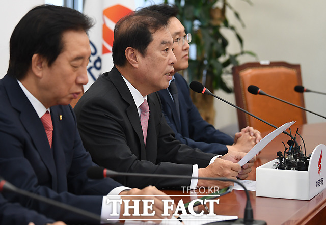 김 비대위원장은 이날 기자회견에서 "한국당은 북한의 비핵화 약속 이행도 없이 국민에게 엄청난 재정 부담만 지우는 정부의 판문점선언 국회 비준동의 밀어붙이기를 결코 수용할 수 없다"고 말했다. 당대표격인 김 위원장이 판문점 선언 국회비준에 대한 공식입장을 밝힌 것은 이번이 처음이다.