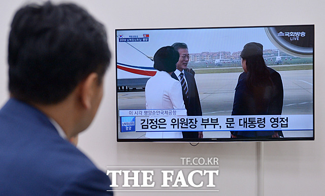 [평양회담] '2018 남북정상회담평양' 중계화면 바라보는 김관영 원내대표