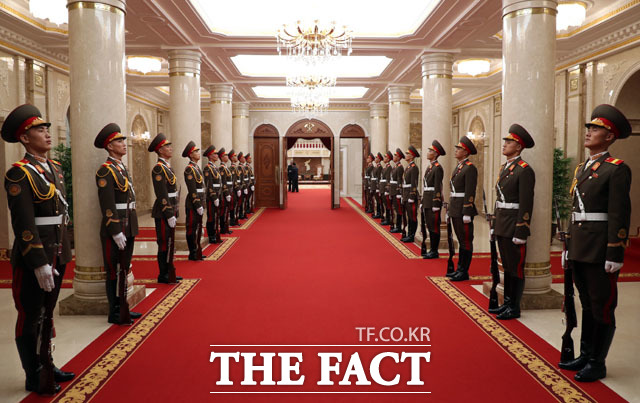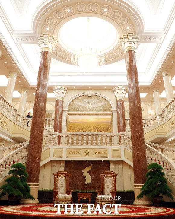 [더팩트 | 평양사진공동취재단] 문재인 대통령과 김정은 국무위원장이 18일 오후 정상회담을 가진 평양 조선노동당 중앙위원회 본부 청사 내부. 노동당 본부청사 건물내부가 남측 언론에 공개된 건 이날이 처음이다.