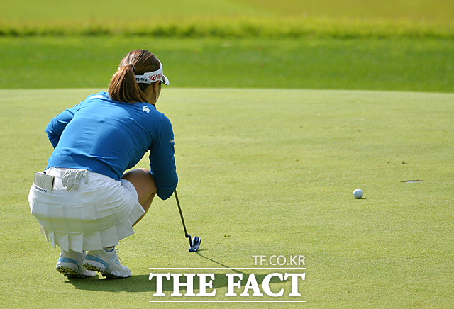 [더팩트ㅣ여주=문병희 기자] KLPGA투어 하이트진로 챔피언십 3라운드 경기가 7일 경기도 여주시 블루헤런골프클럽에서 열린 가운데 김하늘이 퍼팅을 준비하고 있다.