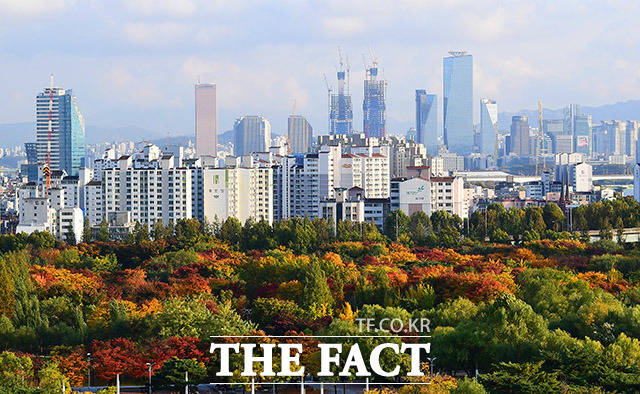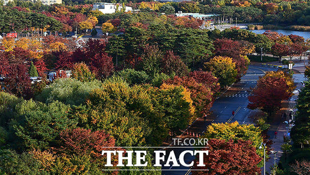 [더팩트ㅣ이동률 기자] 오전내 가을비가 내린 뒤 선선한 가을 날씨를 보인 26일 오후 서울 마포구 하늘공원 일대가 형형색색 단풍으로 물들어가고 있다.