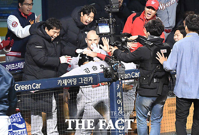 [TF포토] 2점 홈런 강승호 '우승이 눈 앞에!'