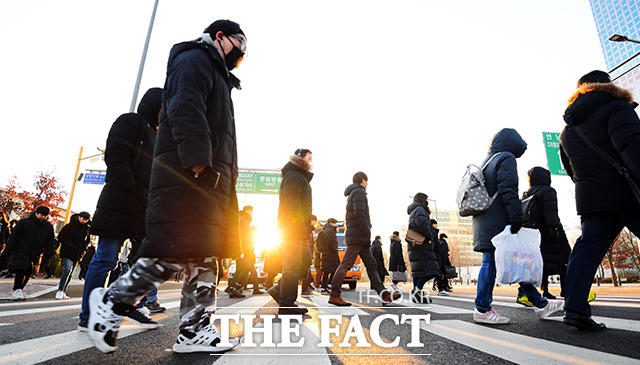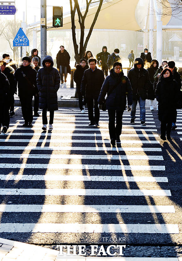 [더팩트|이선화 기자] 2019년 새해 첫 출근일인 2일 오전 서울 마포구 상암로 인근 직장인들이 출근을 위해 힘차게 발을 내딛고 있다.