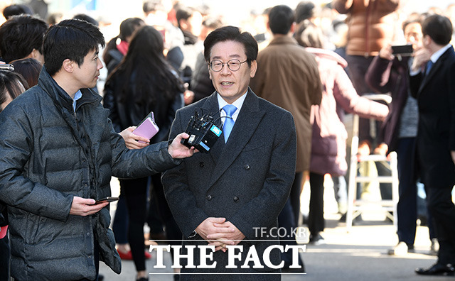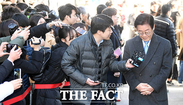 [더팩트ㅣ성남=임영무 기자] 공직선거법 위반 등 혐의로 기소된 이재명 경기도지사가 17일 오후 경기도 성남시 수정구 수원지방법원 성남지원에서 열린 3차 공판에 출석해 기자의 질문에 답변을 하고 있다.