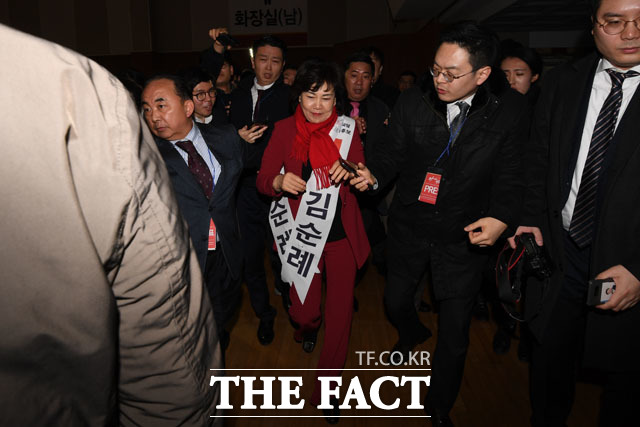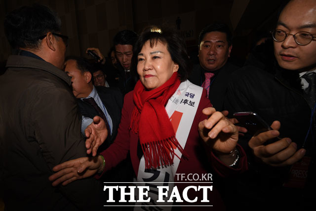 [더팩트 | 대전=남윤호 기자] 최고위원에 출마한 김순례 후보가 14일 오후 대전 중구 한밭종합운동장에서 열린 자유한국당 제3차 전당대회 충청·호남권 합동연설회를 마치고 취재진을 피해 연설회장을 빠져나가고 있다.
