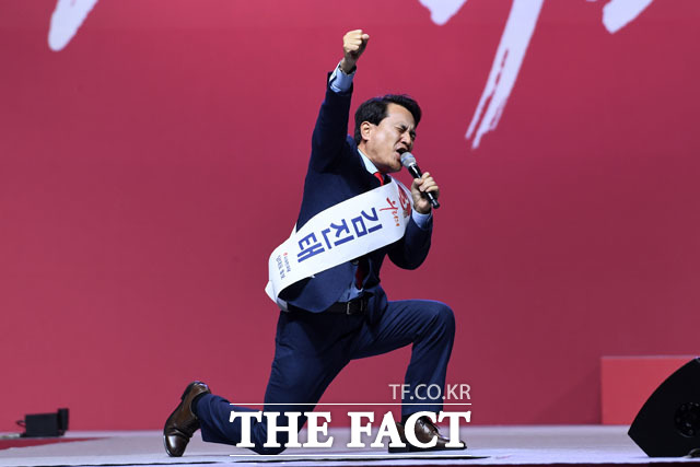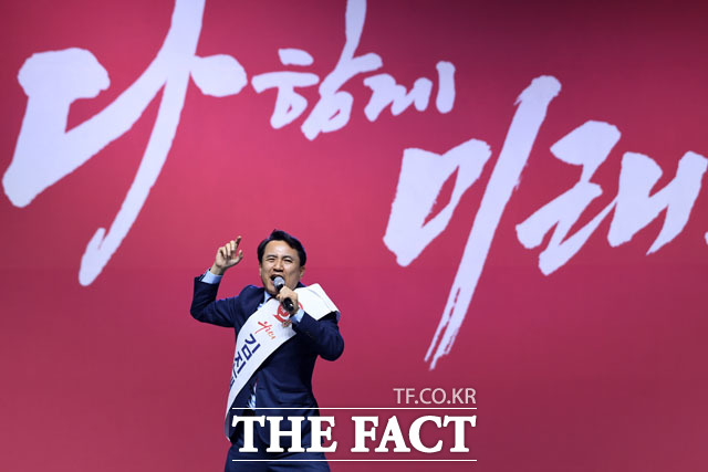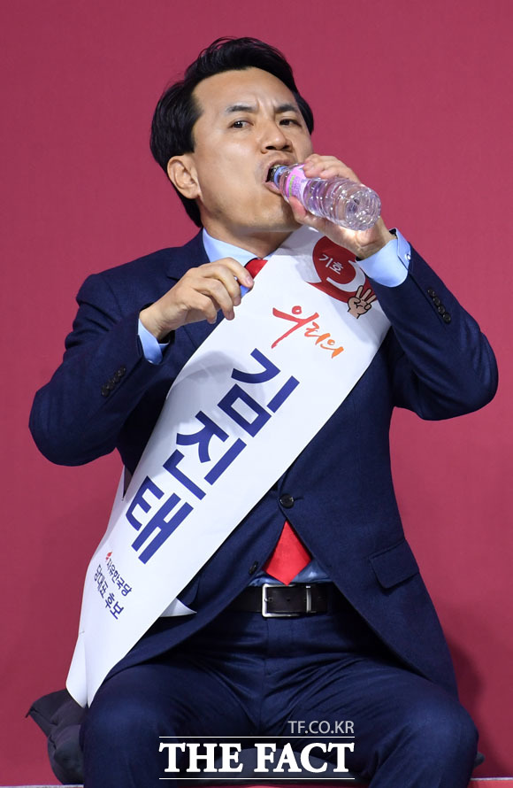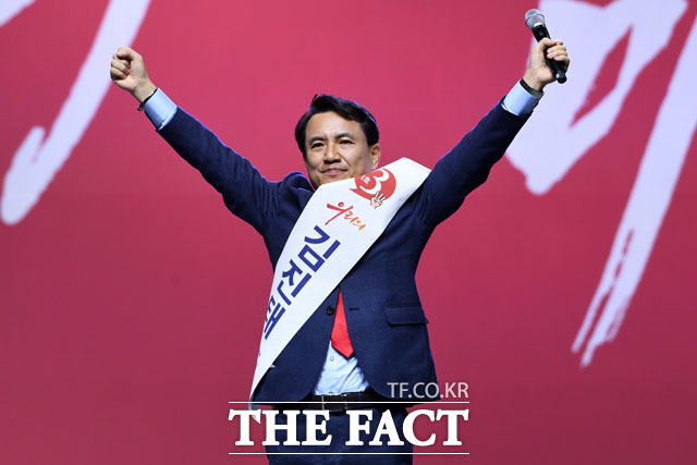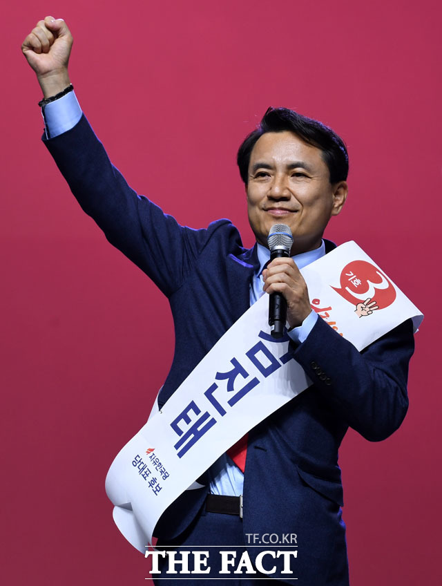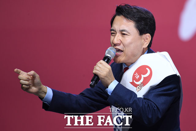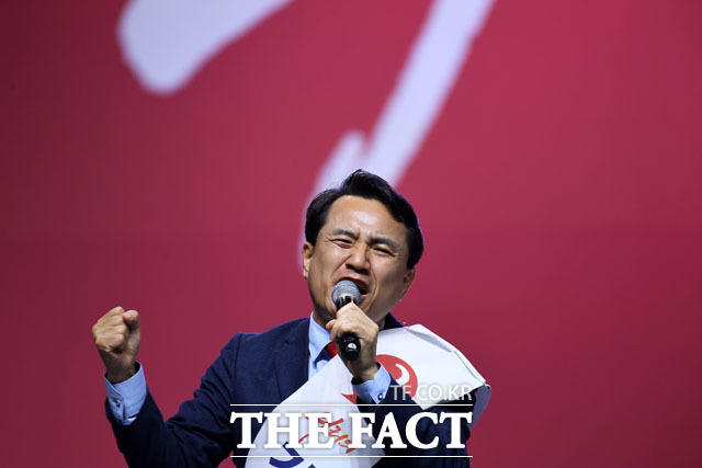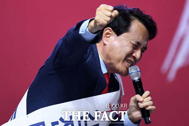 [더팩트 | 고양=남윤호 기자] 김진태 자유한국당 당대표 후보가 27일 오후 경기도 고양시 킨텍스에서 열린 자유한국당 제3차 전당대회에 참석해 정견발표를 하고 있다.
