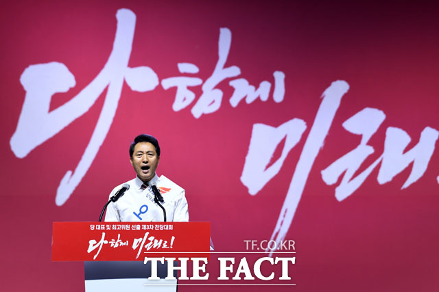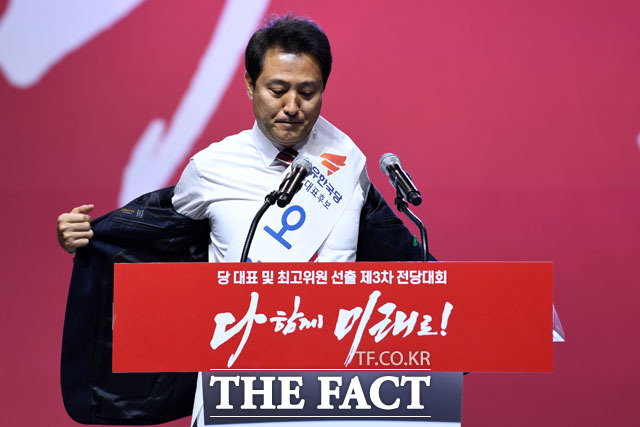 [더팩트 | 고양=남윤호 기자] 자유한국당 당 대표에 도전하는 오세훈 전 서울시장이 27일 오후 경기도 고양시 킨텍스에서 열린 자유한국당 제3차 전당대회에 참석해 정견발표를 하고 있다.