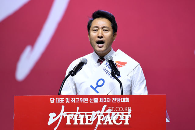 [TF포토] '이겨야 바꿀 수 있다'…정견발표하는 오세훈 후보