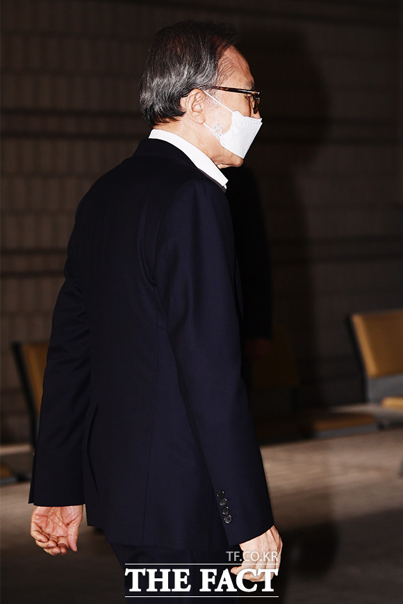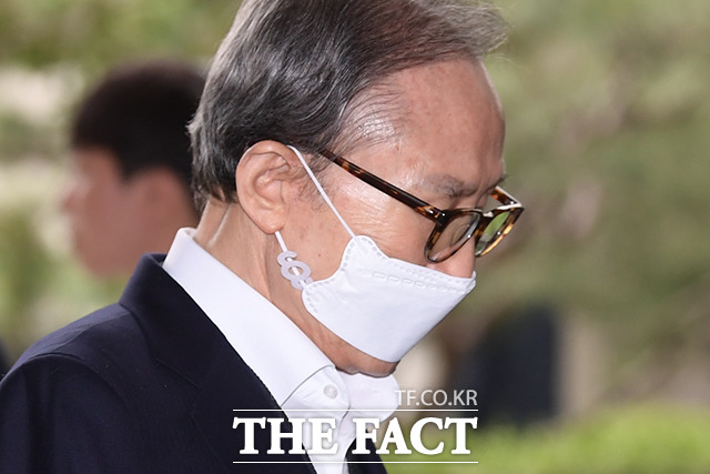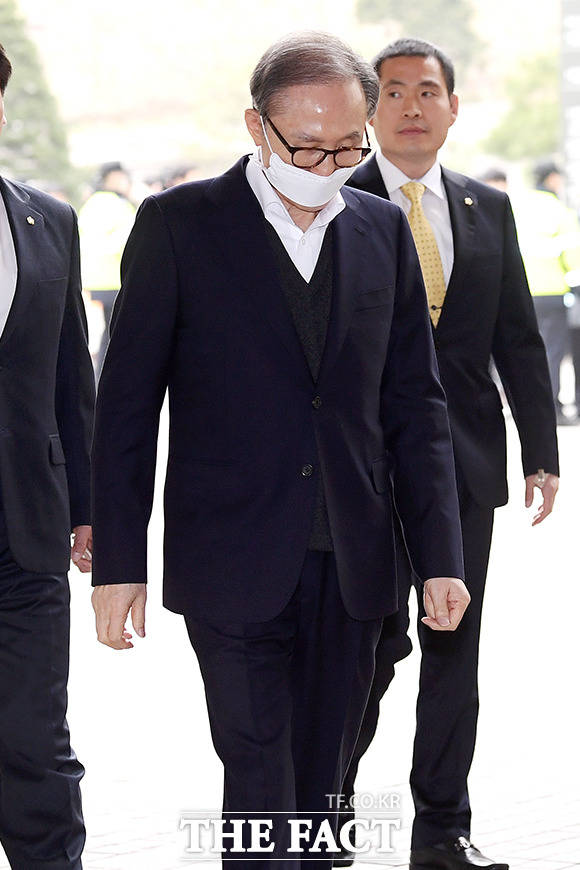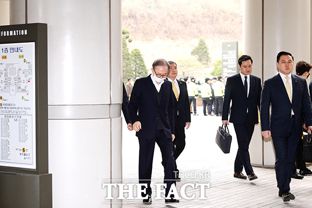 법원 안으로 들어가자마자 마스크 벗는 이 전 대통령