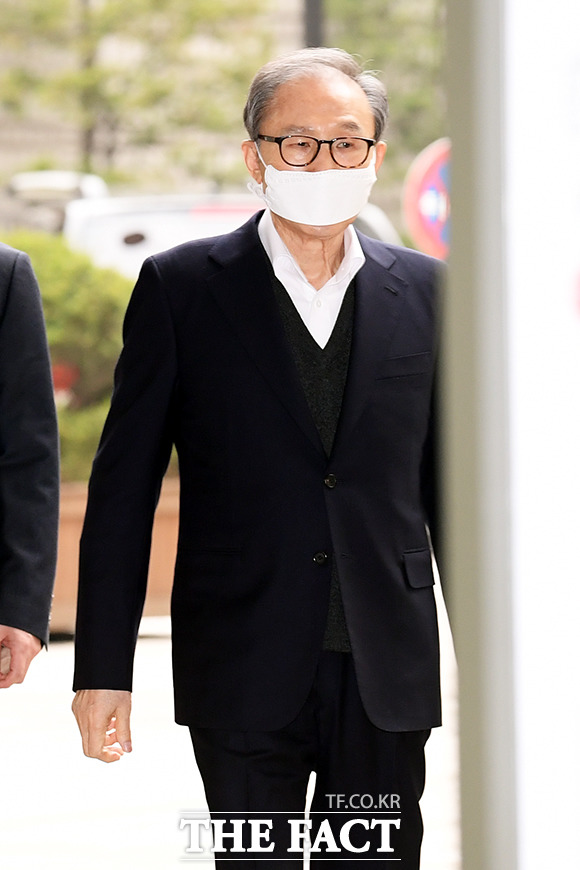 [더팩트|이선화 기자] 다스 횡령과 뇌물수수 의혹을 받고 있는 이명박 전 대통령이 20일 오후 서울 서초구 서울고등법원에서 열린 항소심 속행 공판에 출석하고 있다.