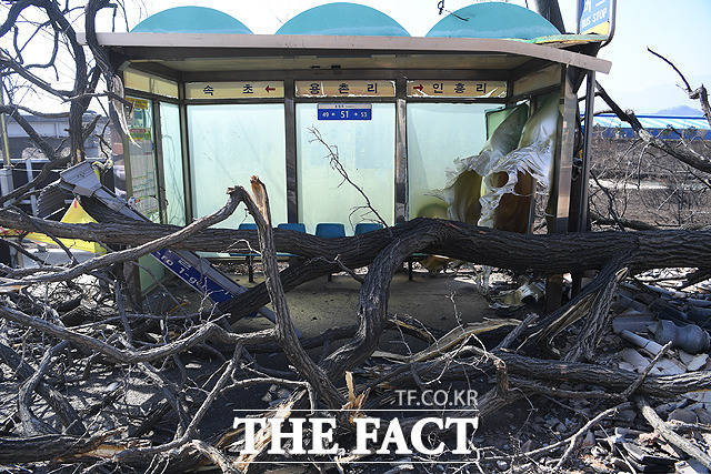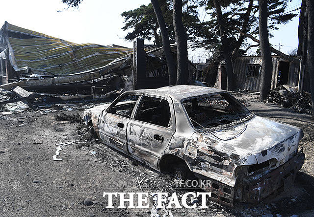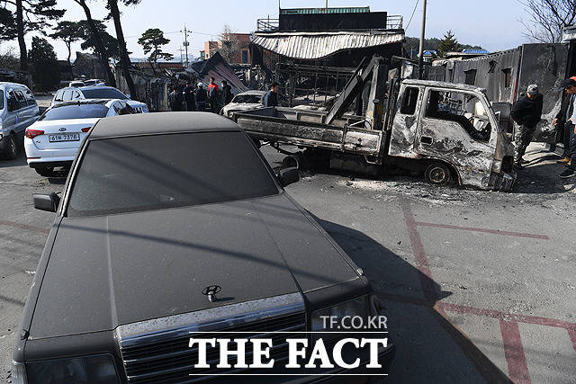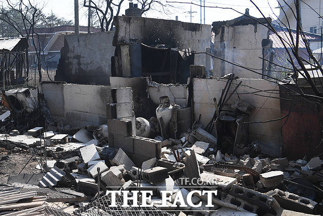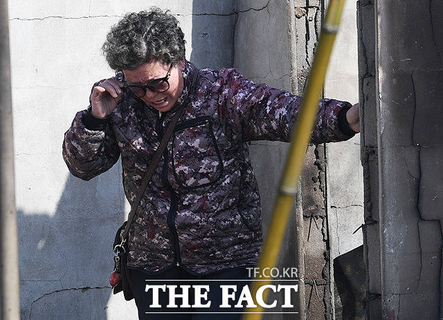 [TF포토] 하룻밤 산불에 전쟁터로 변한 속초, '오열하는 피해 주민'