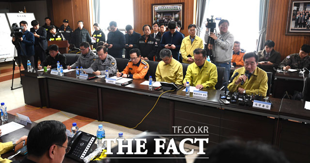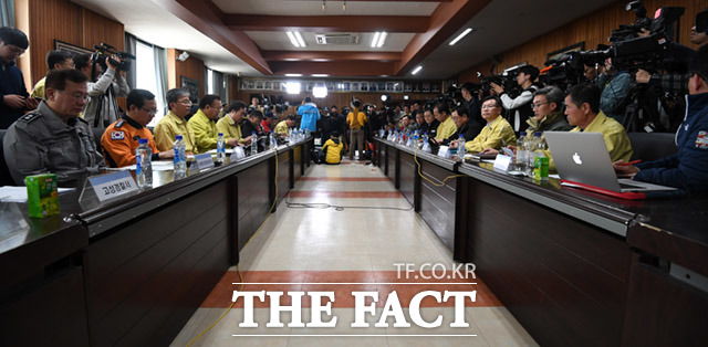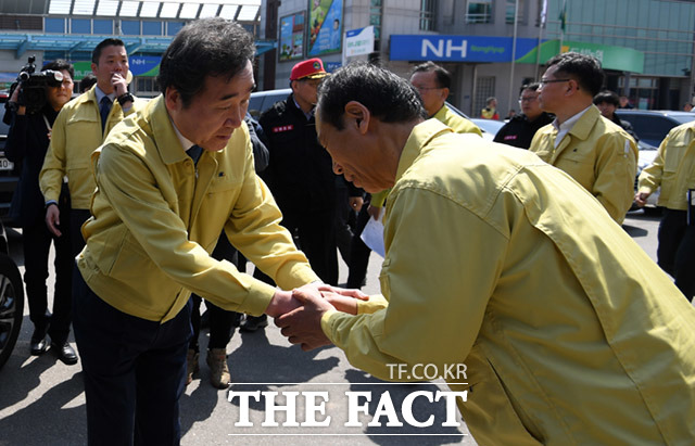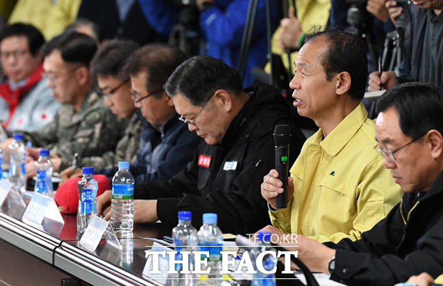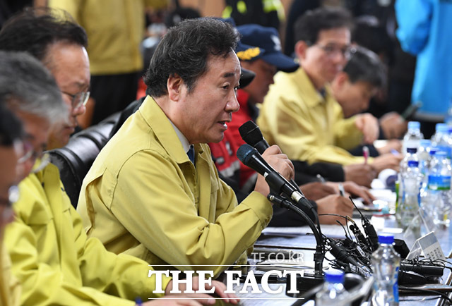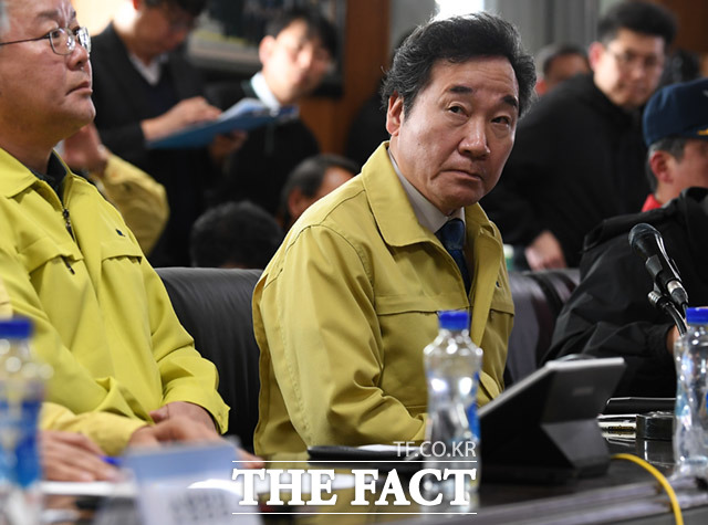 [더팩트ㅣ고성=임세준 기자] 이낙연 국무총리가 5일 오후 강원도 고성군 토성면행정복지센터에 설치된 현장상황실을 찾아 화재상황을 점검하고 있다.