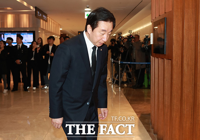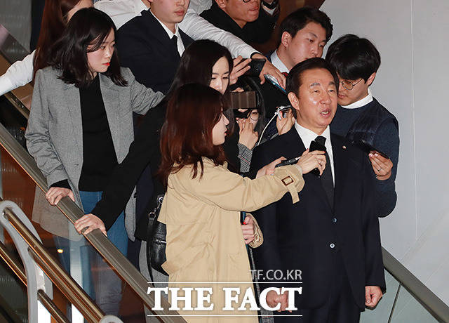 [더팩트ㅣ남용희 기자] 자유한국당 김성태 의원이 12일 오후 서울 서대문구 신촌 세브란스병원 장례식장에 마련된 조양호 회장 빈소로 향하며 취재진의 질문을 받고 있다.