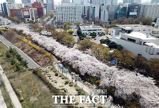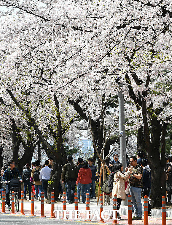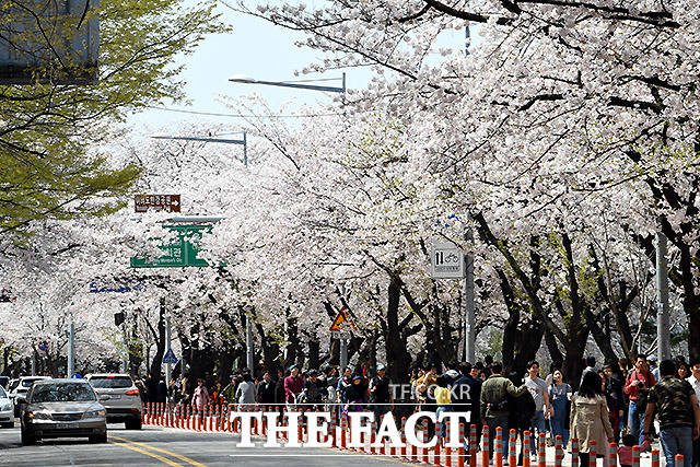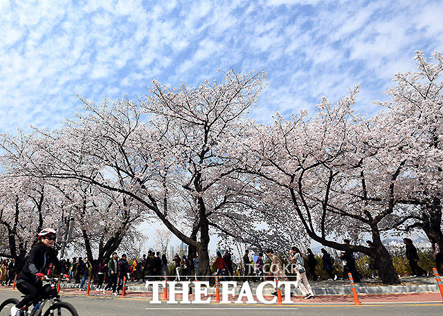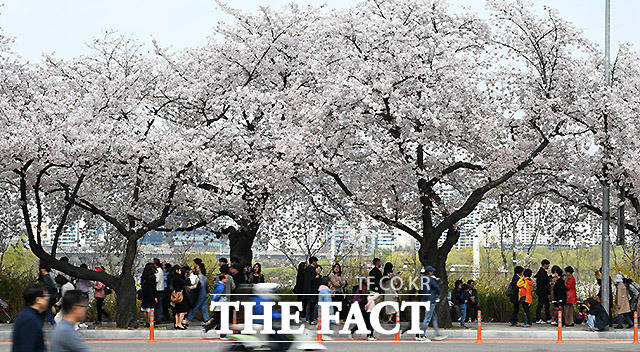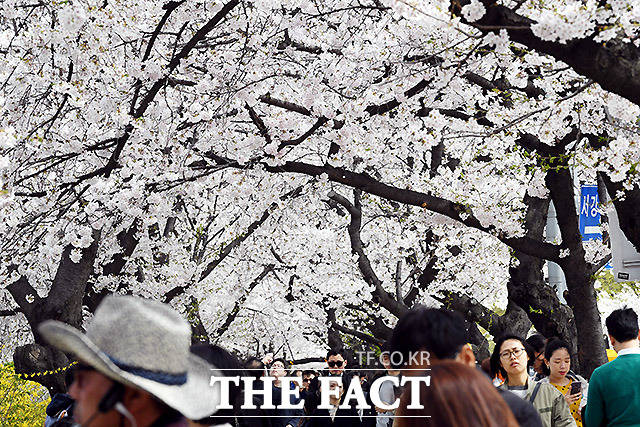 [더팩트ㅣ이효균 기자] 봄기운이 완연한 13일 오후 서울 여의도 윤중로에서 열린 '2019 여의도 벚꽃 축제'를 찾은 시민들이 벚꽃길을 걸으며 즐거운 시간을 보내고 있다.