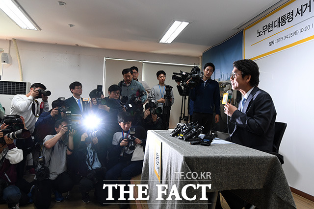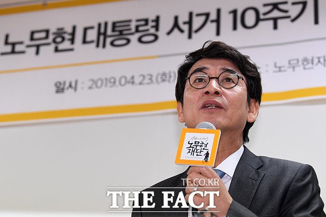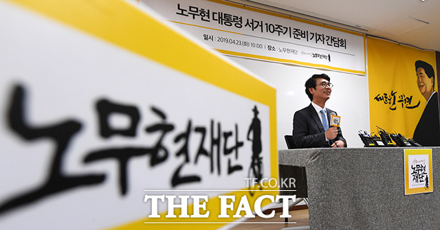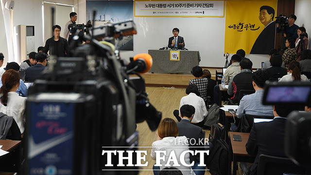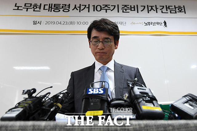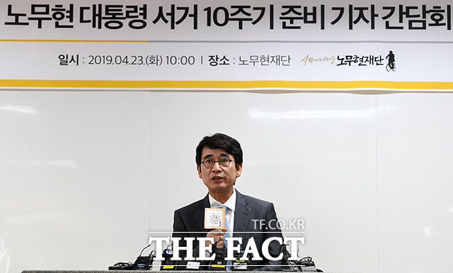 [TF포토] 노무현 전 대통령 서거 10주기 기자간담회 갖는 유시민