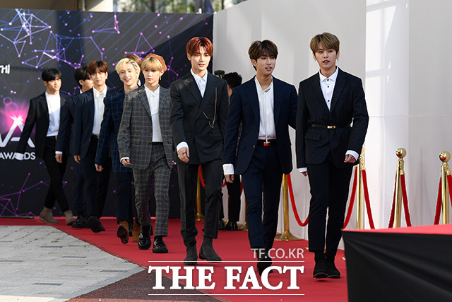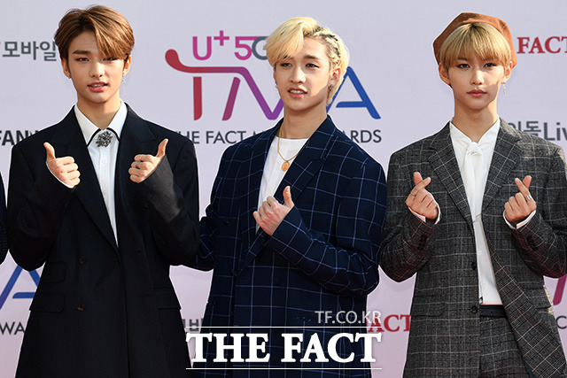 [더팩트ㅣ인천남동체육관=사진영상기획부] 더팩트가 주최하고 팬앤스타(FAN N STAR)가 주관하는 'U⁺5G 더팩트 뮤직 어워즈'(U⁺5G THE FACT MUSIC AWARDS, 'TMA')가 24일 오후 인천광역시 남동구 남동체육관에서 열린 가운데 그룹 스트레이키즈가 포토타임을 갖고 있다.