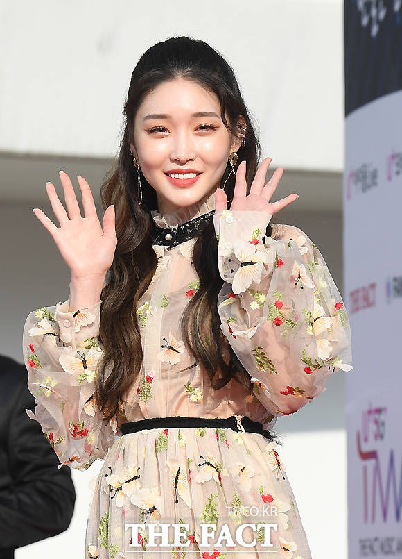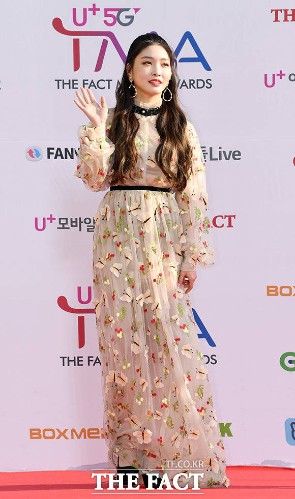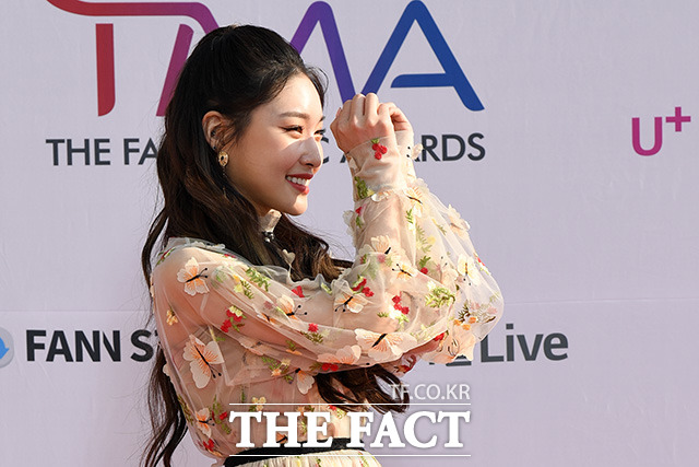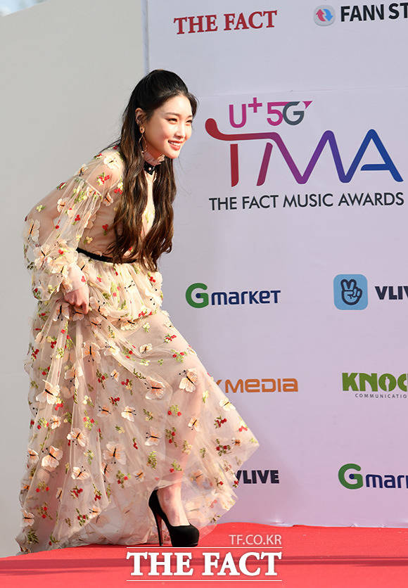 [더팩트ㅣ인천남동체육관=사진영상기획부] 더팩트가 주최하고 팬앤스타(FAN N STAR)가 주관하는 'U⁺5G 더팩트 뮤직 어워즈'(U⁺5G THE FACT MUSIC AWARDS, 'TMA')가 24일 오후 인천광역시 남동구 남동체육관에서 열린 가운데 가수 청하가 포토타임을 갖고 있다.