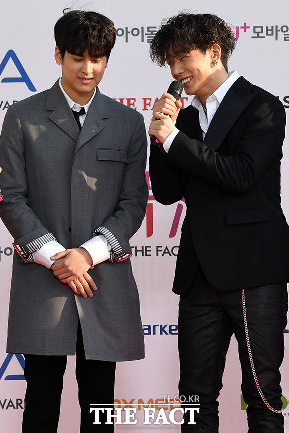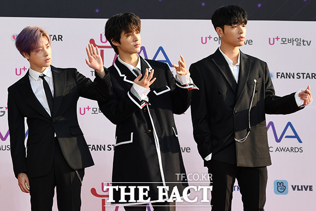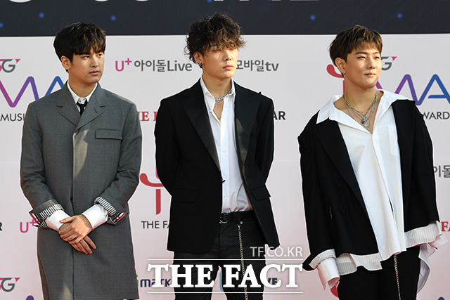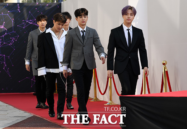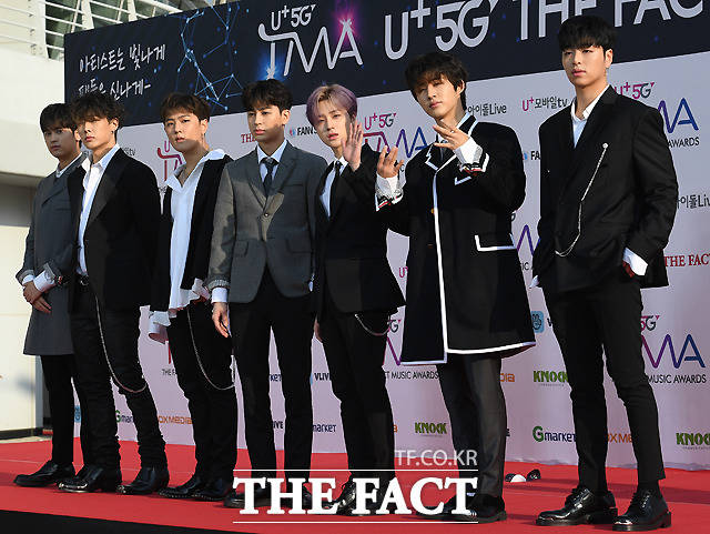 [더팩트ㅣ인천남동체육관=사진영상기획부] 더팩트가 주최하고 팬앤스타(FAN N STAR)가 주관하는 'U⁺5G 더팩트 뮤직 어워즈'(U⁺5G THE FACT MUSIC AWARDS, 'TMA')가 24일 오후 인천광역시 남동구 남동체육관에서 열린 가운데 그룹 아이콘이 포토타임을 갖고 있다.