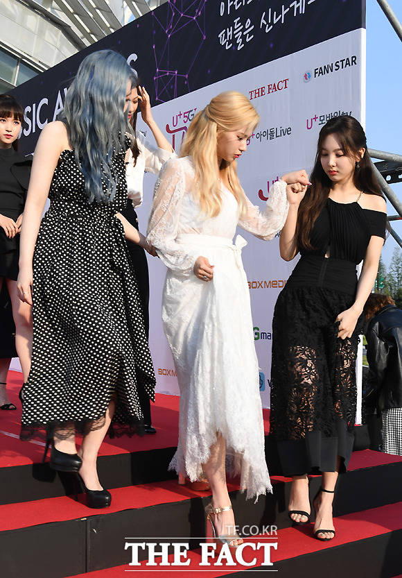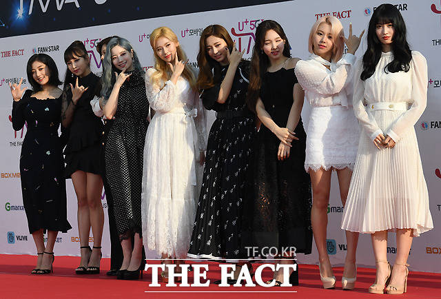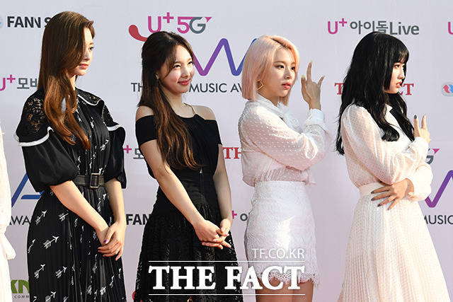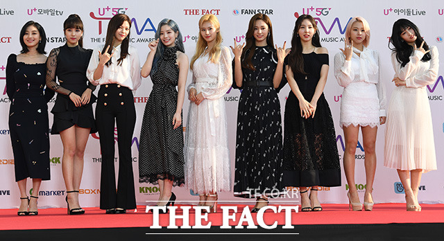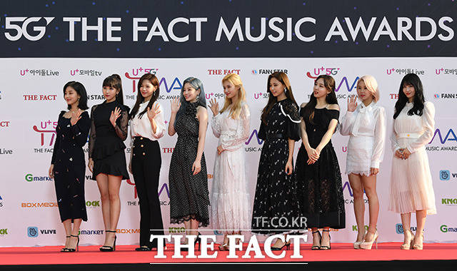 [더팩트ㅣ인천남동체육관=사진영상기획부] 더팩트가 주최하고 팬앤스타(FAN N STAR)가 주관하는 'U⁺5G 더팩트 뮤직 어워즈'(U⁺5G THE FACT MUSIC AWARDS, 'TMA')가 24일 오후 인천광역시 남동구 남동체육관에서 열린 가운데 그룹 트와이스가 포토타임을 갖고 있다.