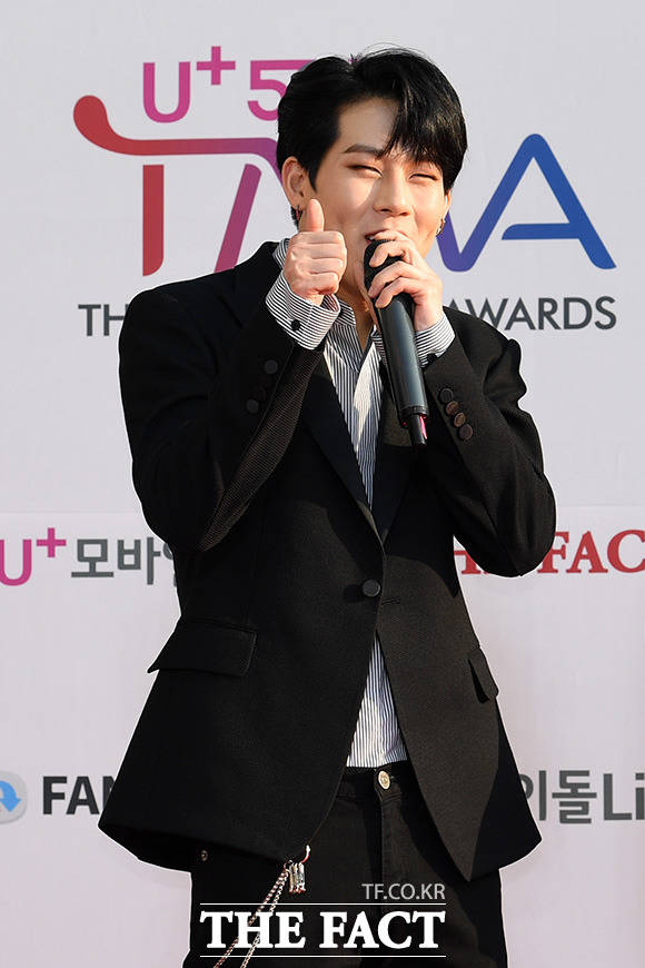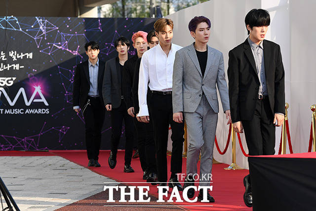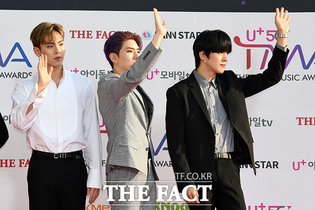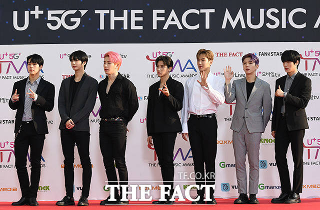 [더팩트ㅣ인천남동체육관=사진영상기획부] 더팩트가 주최하고 팬앤스타(FAN N STAR)가 주관하는 'U⁺5G 더팩트 뮤직 어워즈'(U⁺5G THE FACT MUSIC AWARDS, 'TMA')가 24일 오후 인천광역시 남동구 남동체육관에서 열린 가운데 그룹 몬스타엑스가 포토타임을 갖고 있다.