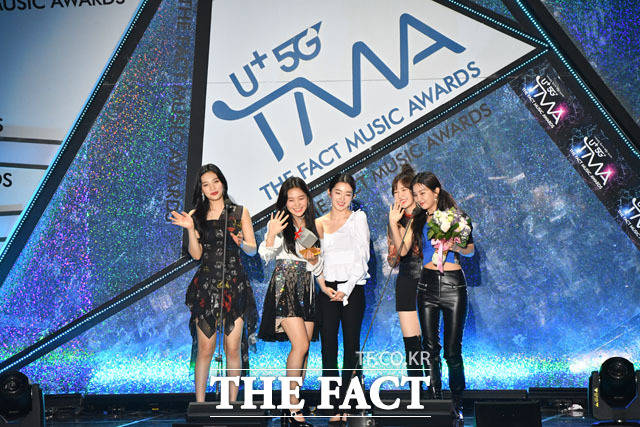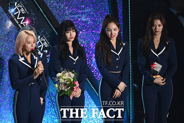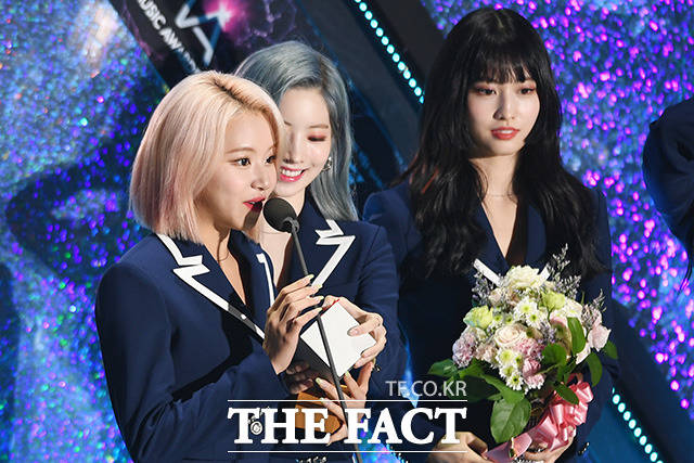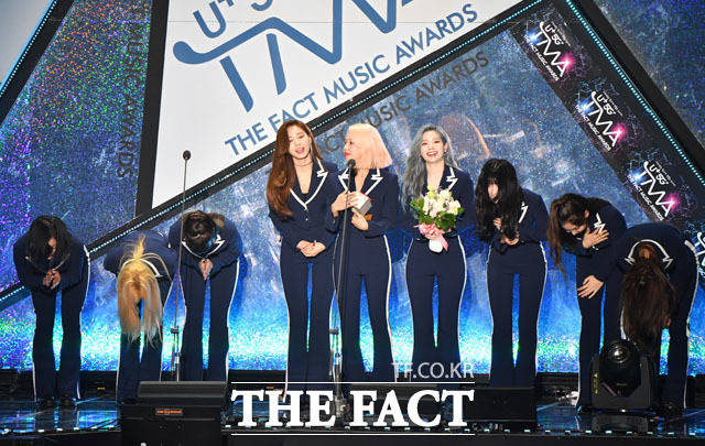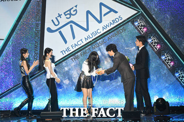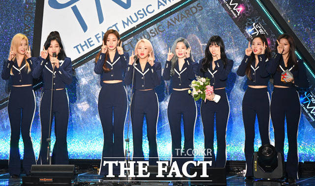 [더팩트ㅣ인천남동체육관=사진영상기획부] 더팩트가 주최하고 팬앤스타(FAN N STAR)가 주관하는 'U⁺5G 더팩트 뮤직 어워즈'(U⁺5G THE FACT MUSIC AWARDS, 'TMA')가 24일 오후 인천광역시 남동구 남동체육관에서 열린 가운데 그룹 트와이스가 World Wide Icon상을 수상하고 있다.