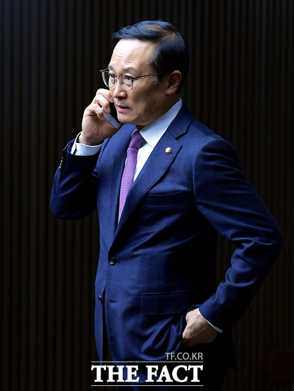 [더팩트ㅣ국회=이덕인 기자] 패스트트랙(신속처리안건)을 둘러싼 여야의 대치가 계속되는 가운데 더불어민주당 홍영표 원내대표가 29일 오후 서울 여의도 국회에서 열린 의원총회에 참석해 심각한 표정으로 전화를 받고 있다.