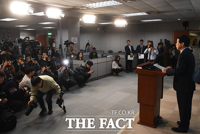 [더팩트ㅣ국회=배정한 기자] 노웅래 더불어민주당 의원이 30일 오전 서울 여의도 국회 정론관에서 기자회견을 열고 원내대표 경선 출마를 선언하고 있다.