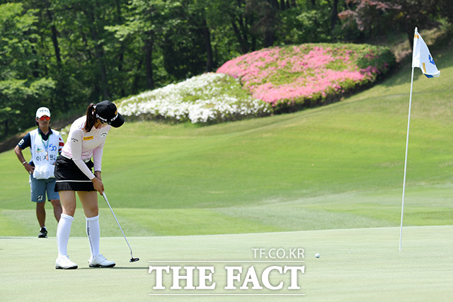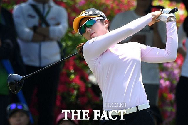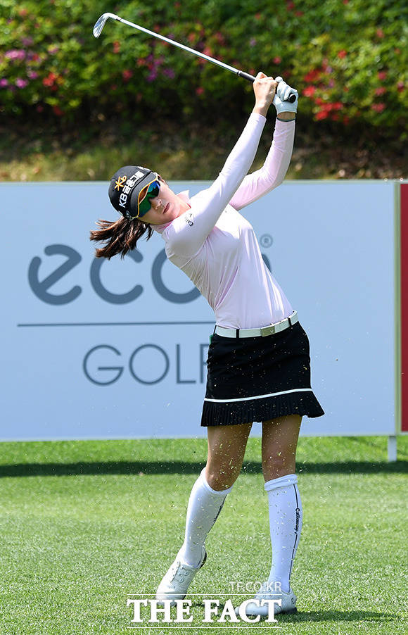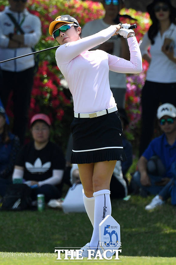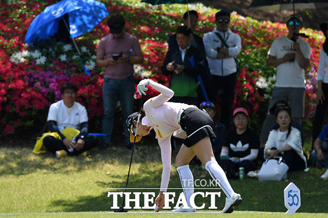 [더팩트ㅣ용인=남용희 기자] KLPGA 2019시즌 여덟 번째 대회인 '2019 NH투자증권 레이디스 챔피언십' 1라운드 경기가 10일 경기도 용인시 수원컨트리클럽에서 열린 가운데 안송이가 티샷을 하고 있다.