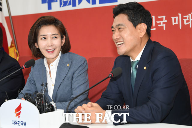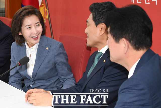 [더팩트 | 국회=남윤호 기자] 오신환 바른미래당 신임 원내대표(오른쪽)가 16일 오전 서울 여의도 국회에서 나경원 자유한국당 원내대표를 예방해 악수하며 인사를 나누고 있다.