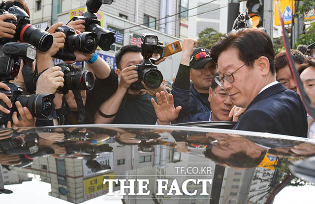 [더팩트ㅣ성남=김세정 기자] 직권 남용과 선거법 위반 혐의로 기소된 이재명 경기도지사가 16일 오후 경기도 성남시 수정구 수원지방법원 성남지원에서 열린 1심 선고 공판에서 무죄 판결을 받은 후 지지자들에게 인사하며 차량에 탑승하고 있다.
