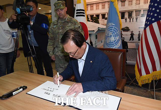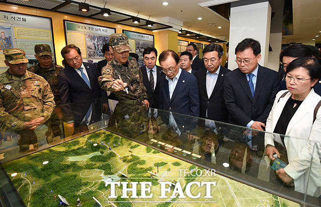 [더팩트ㅣ파주=국회사진취재단] 이해찬 더불어민주당 대표와 의원들이 31일 오전 경기도 파주시 판문점에서 열린 최고위원회의에 앞서 JSA 안보견학관을 둘러보고 있다.