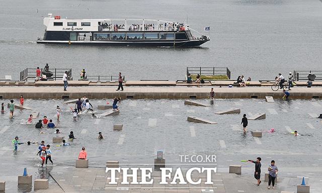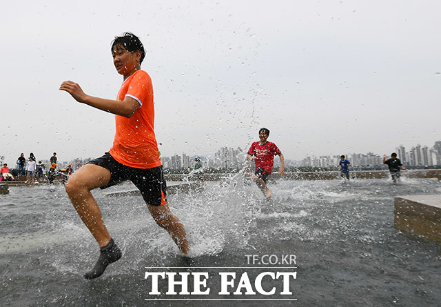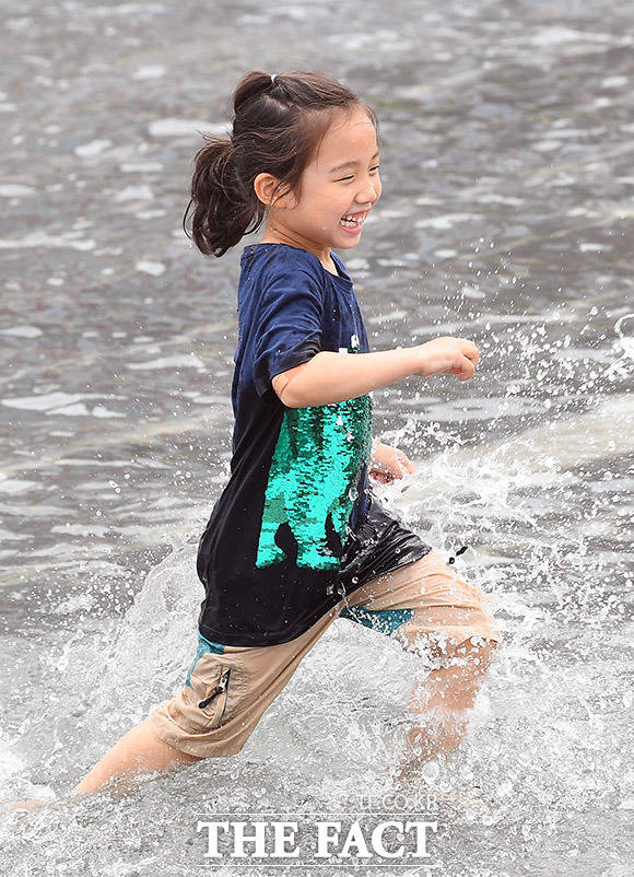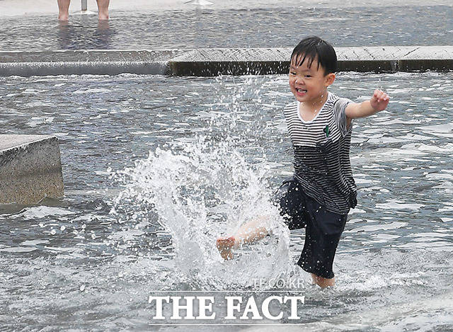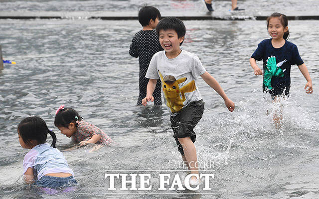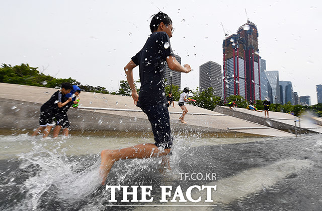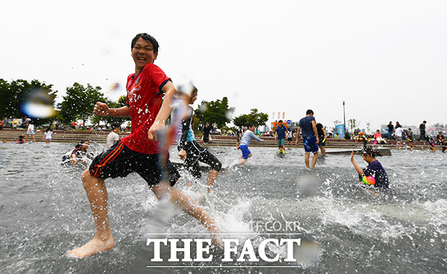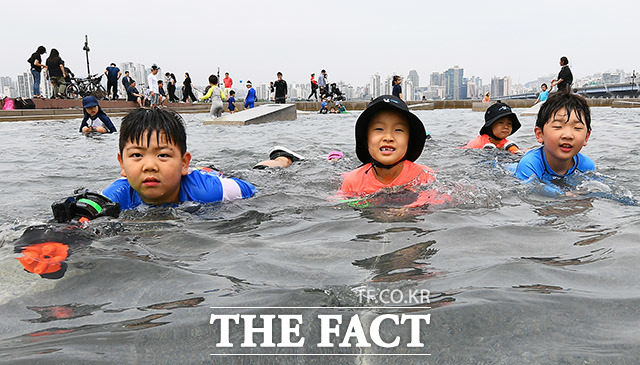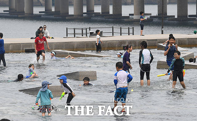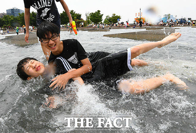 [더팩트ㅣ이동률 기자] 초여름 날씨를 보인 1일 오후 서울 영등포구 여의도 물빛광장에서 어린이들이 물놀이를 하며 즐거워하고 있다.