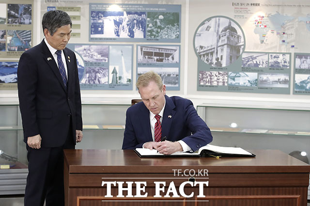 패트릭 새너핸 미국 국방부 장관 대행이 작성한 방명록.