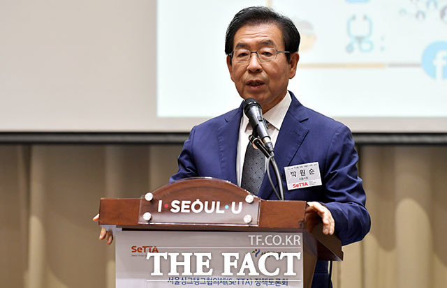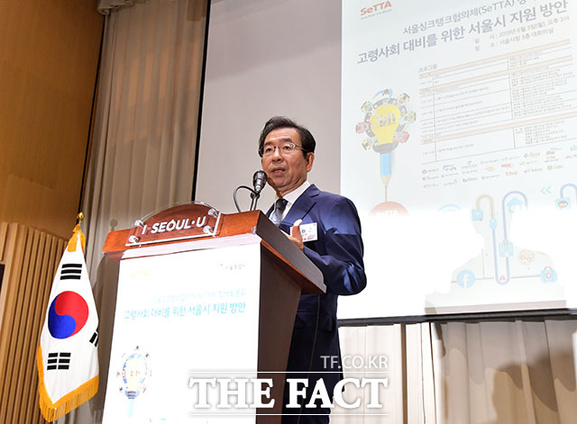[더팩트ㅣ이덕인 기자] 박원순 서울시장이 3일 오전 서울 중구 서울시청에서 열린 서울싱크탱크협의체 정책토론회에 참석해 축사를 하고 있다.