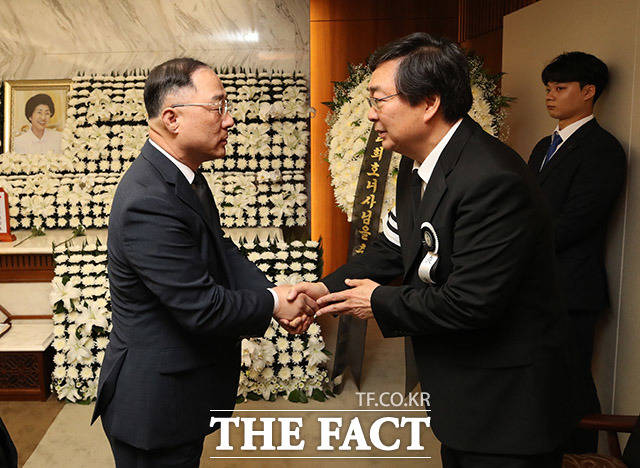 [더팩트ㅣ이동률 기자] 홍남기 경제부총리 겸 기획재정부 장관이 13일 오전 서울 서대문구 신촌 세브란스병원 장례식장에 마련된 고 이희호 여사 빈소를 찾아 조문하고 있다.