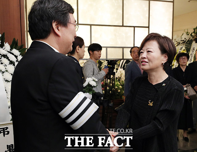 [더팩트ㅣ이동률 기자] 진선미 여성가족부 장관이 13일 오전 서울 서대문구 신촌 세브란스 병원 장례식장에 마련된 고 이희호 여사 빈소를 찾아 조문하고 있다.