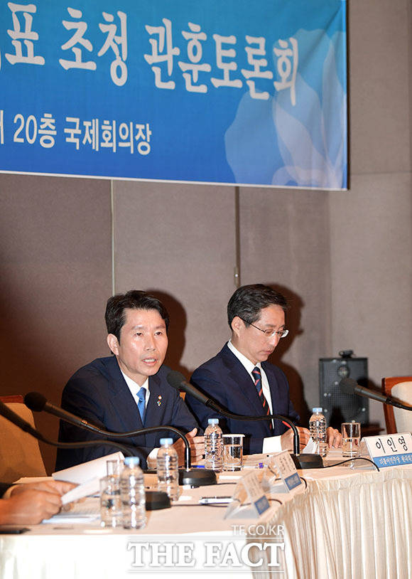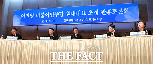 [더팩트ㅣ이덕인 기자] 이인영 더불어민주당 원내대표가 19일 오전 서울 중구 프레스센터에서 열린 관훈토론회에 참석해 모두발언을 하고 있다.